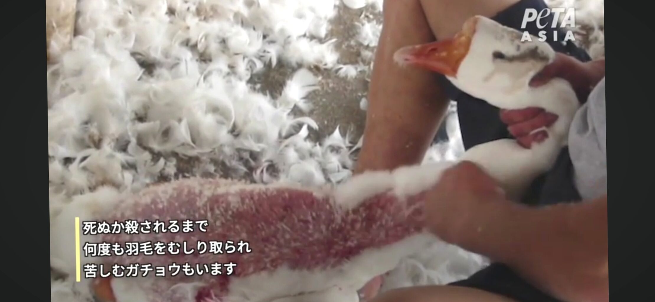 フォアグラにされるガチョウは無理矢理餌を食わされるから羽毛がぐちゃぐちゃになるで