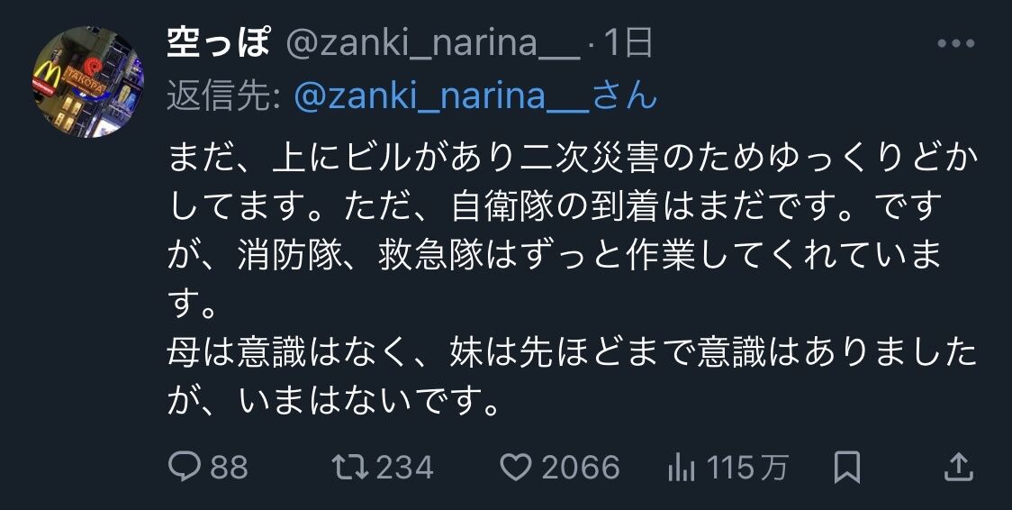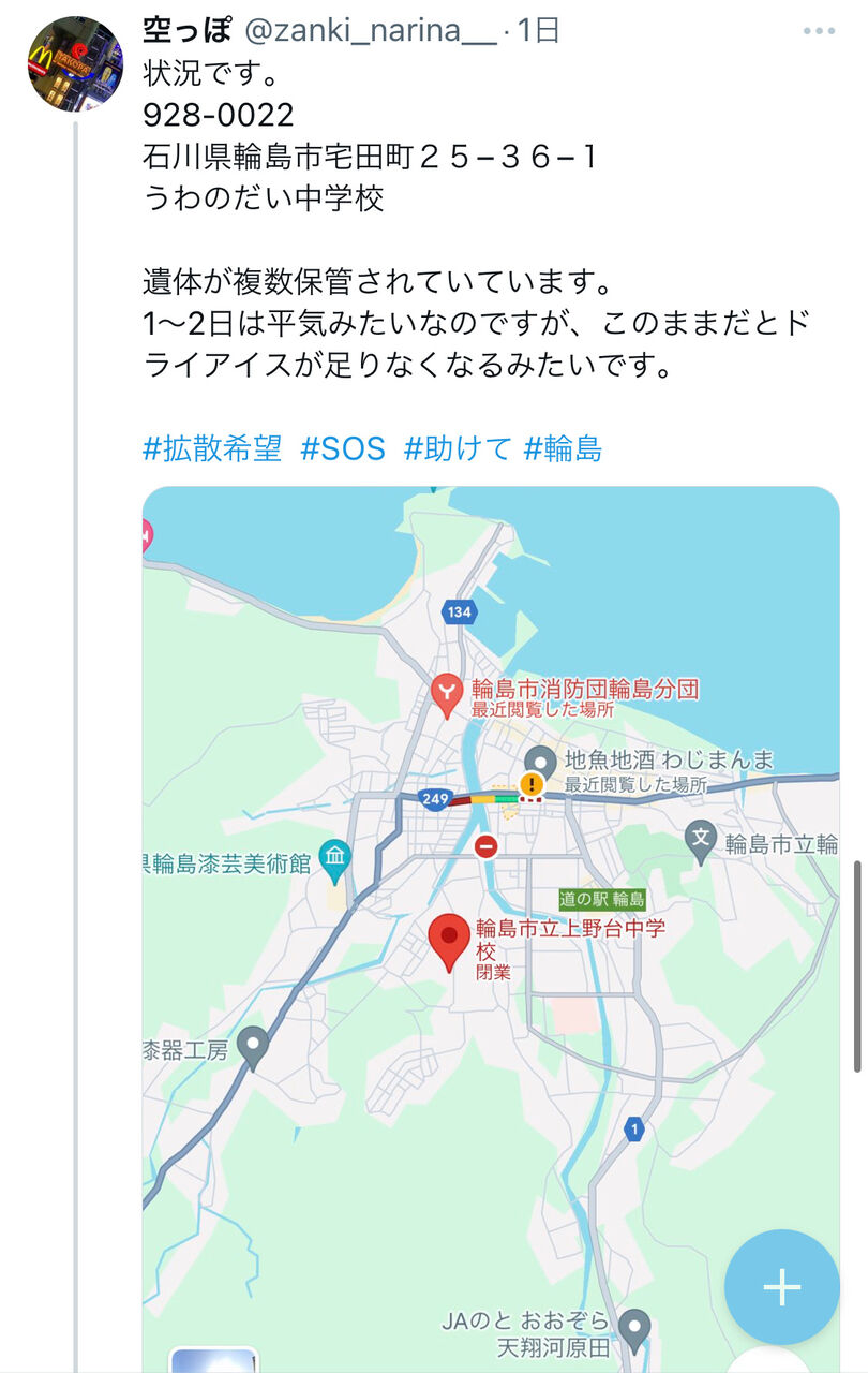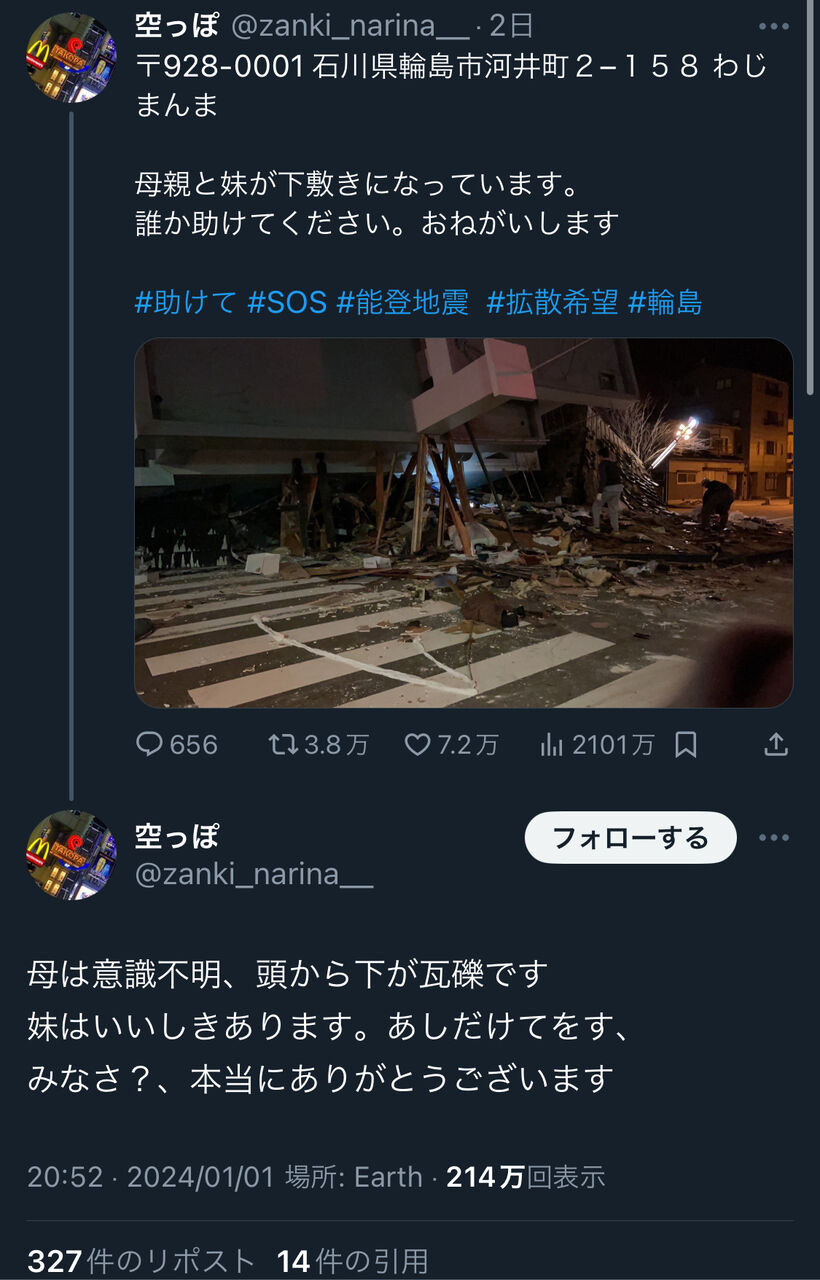 ワイの親戚も能登におるからXで地名で検索かけて見てたけど