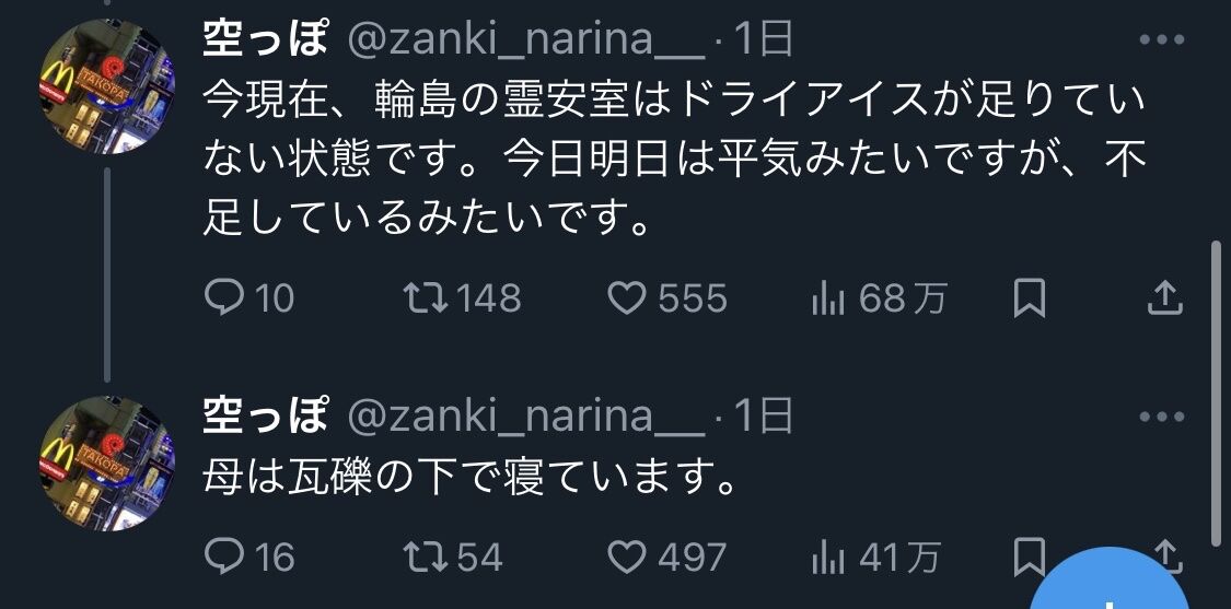 東日本大震災クラスなら遺体に構ってられんけど今回のはドライアイス支援とかするインフラの余裕あるんか?