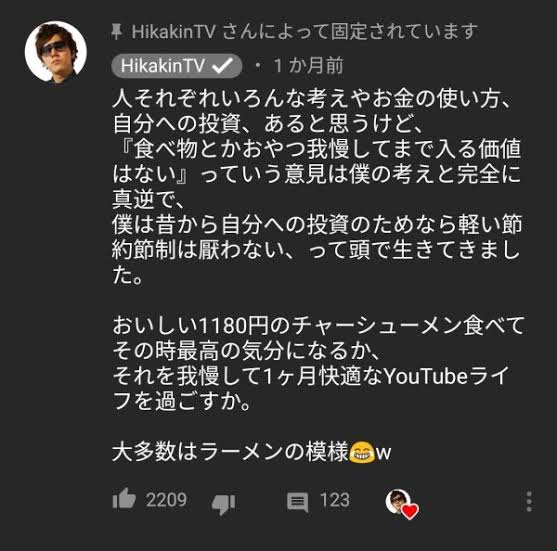 ヒカキンは我慢せず何でも食えるだろうけど庶民は我慢を強いられるのか