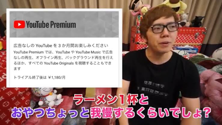 ラーメン食べた1日の幸せか1ヶ月後幸せになれるYouTubeプレミアムどっちがええかってそりゃYouTube見てるやつならYouTubeやろな
