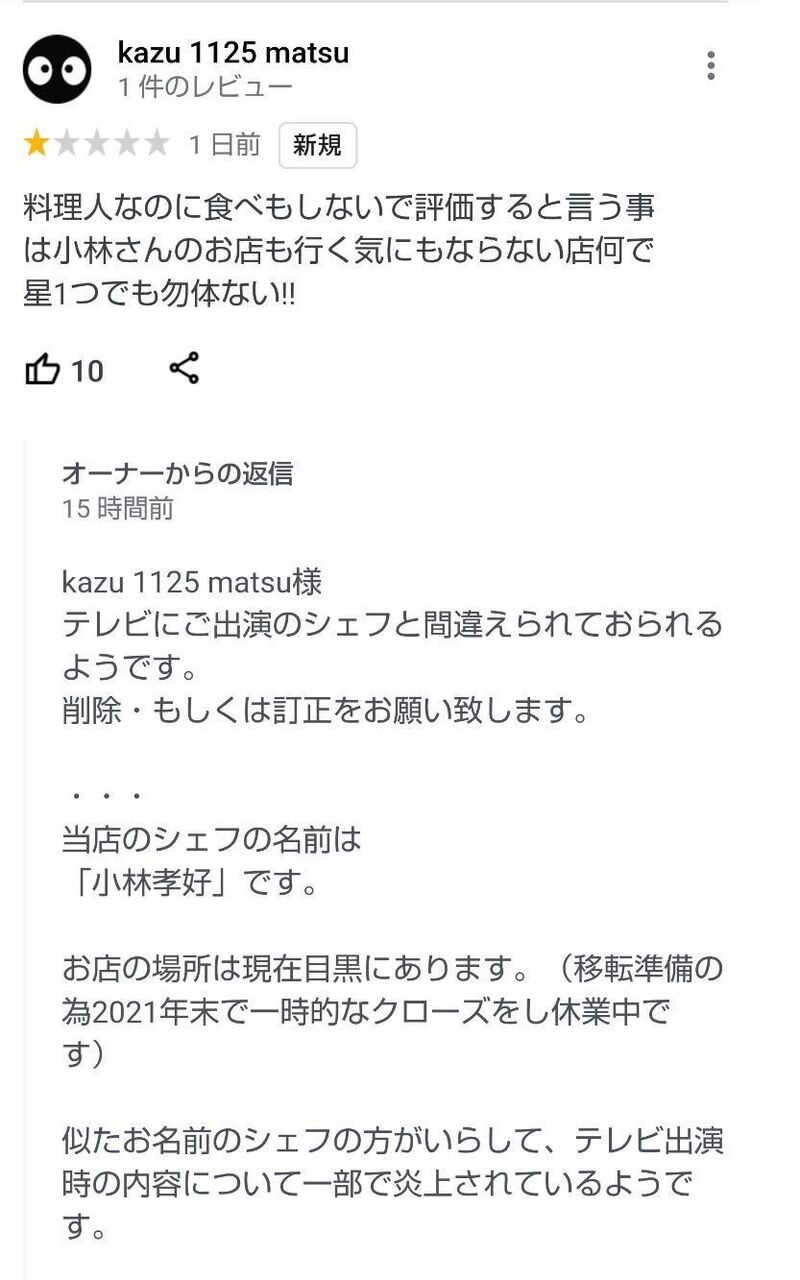 件のシェフを非難すれど人違いは起こしていない😤