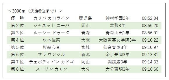 1 8:43.09 NGR カリバ カロライン (3) 神村学園・鹿児島