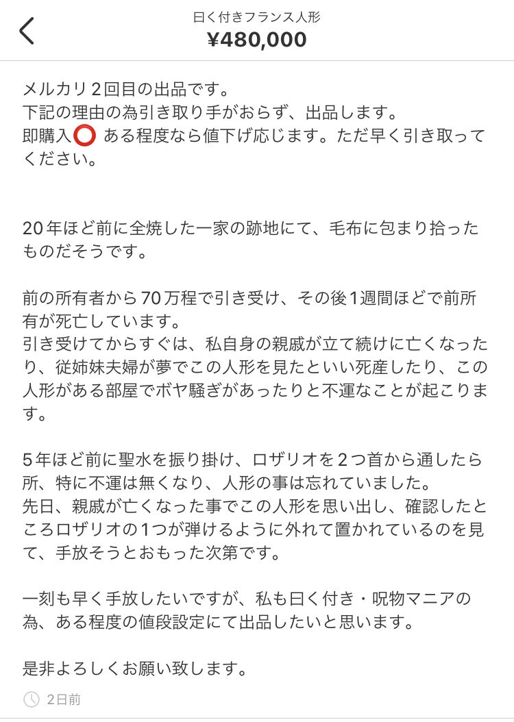 前の持ち主、人形手放して1週間で死んだなら持ってる間幸せ効果の方があったいう事やん