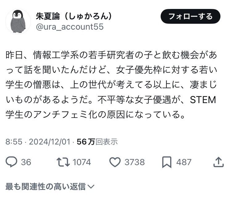 今の日本では女が異常に優遇されまくるせいで、