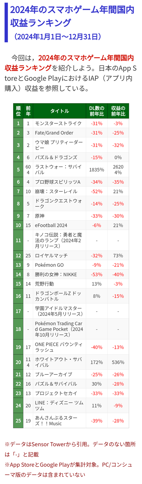 前年604位から爆上げのラストウォーサバイバルとかいうのなんやねん
