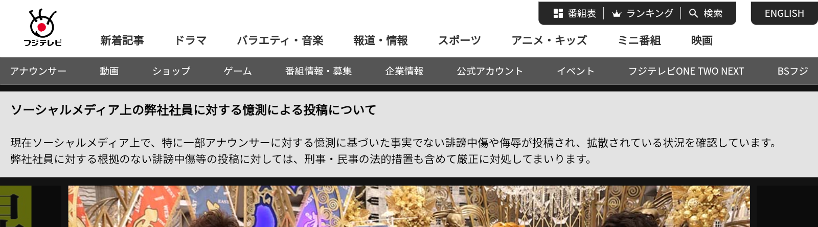 まず事実かどうかをフジで確認しないとなぁ