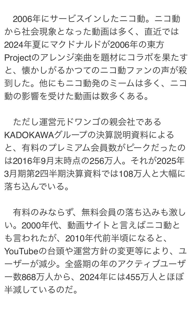その生活に慣れてから特にニコニコに戻ってくる理由がないんだよね純粋に