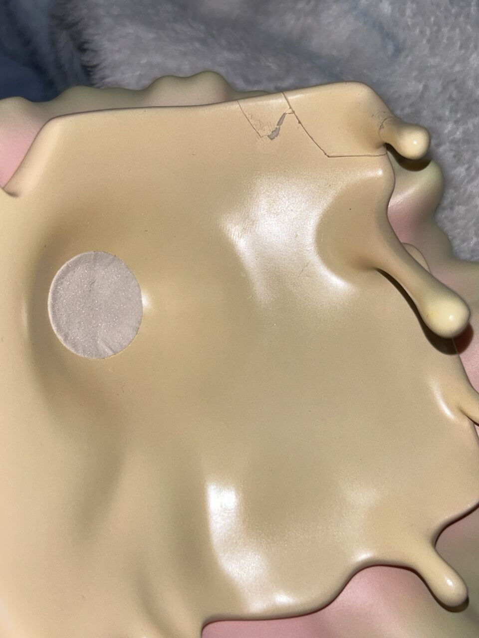 100均のUVレジンフレッシュピンクと着色剤イエローあとベビーパウダーを配合すると肌色パテが作れるからそれ盛って削ってなんとかするしかねえな