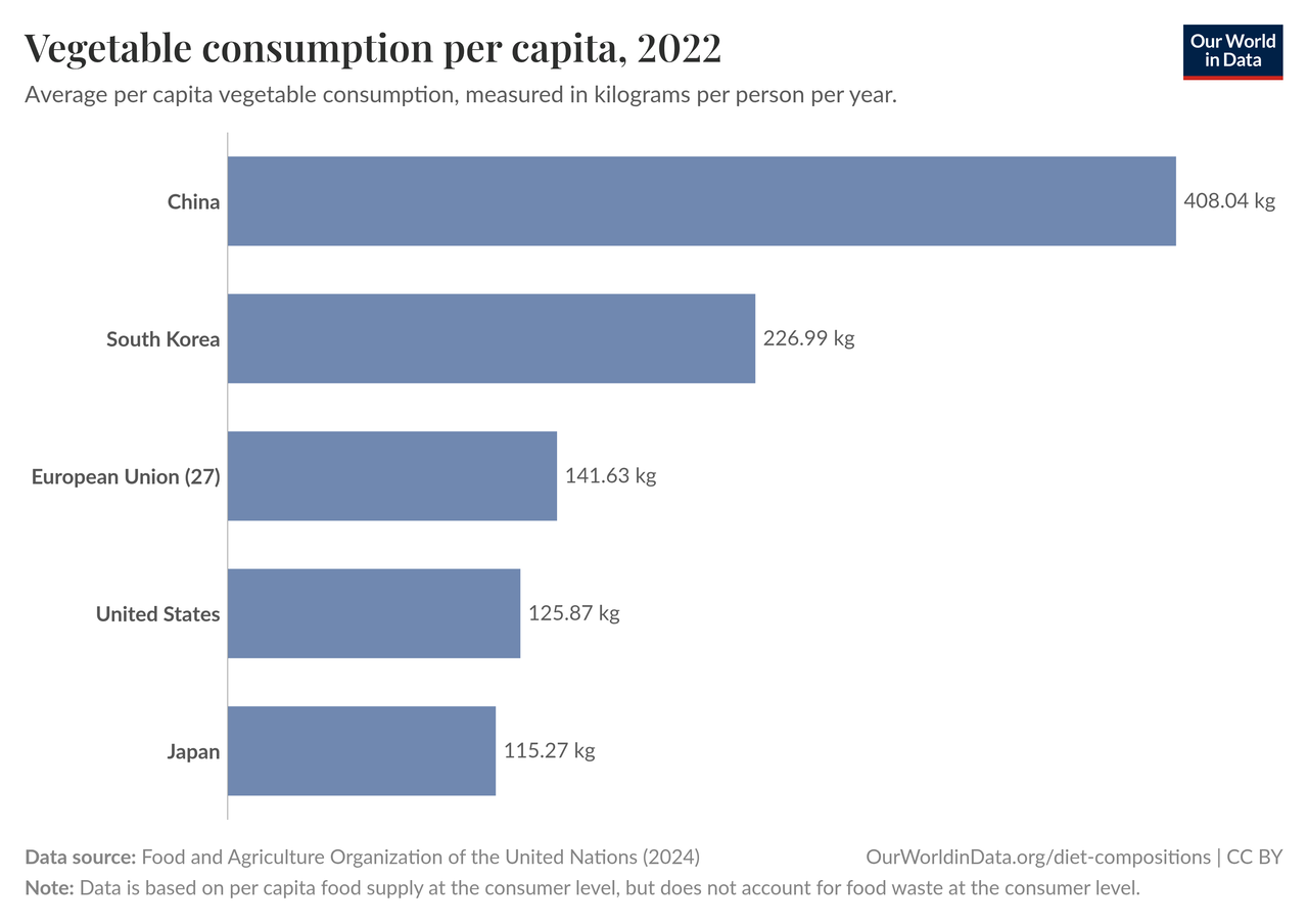 ちなみに中国は約2900kcalだからこいつはマジで野菜めっちゃ食ってる