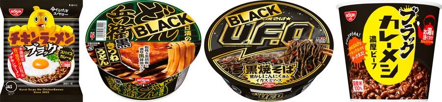 日清食品株式会社 (社長:安藤 徳隆) は、「ブラックチキンラーメン」「日清のBLACKどん兵衛 黒きつねうどん 粗挽き黒胡椒と濃厚黒醤油スープ」「日清焼そばBLACK U.F.O. 黒焼そば 焦がしにんにく香るイカスミソース」「日清ブラックカレーメシ 濃厚ビーフ」を11月10日(月)に全国で新発売します。