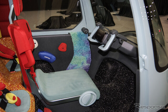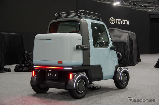 自転車以上、軽自動車未満の扱いやすく安心できるジャストサイズの新モビリティとし、コンパクトなサイズながら1+2シートとした。ボディサイズは全長2200×全幅1295×全高1680mm、ホイールベース1600mm。見るからに小回りが効きそうなスタイリングだ。