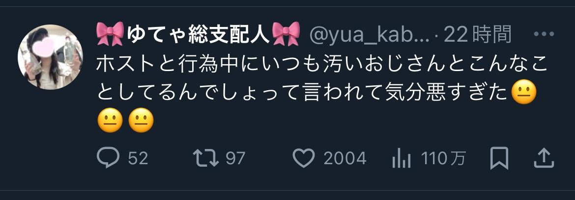 ちなみにホストも大半がそのレベルであそこの空間まともに会話が成り立ってない
