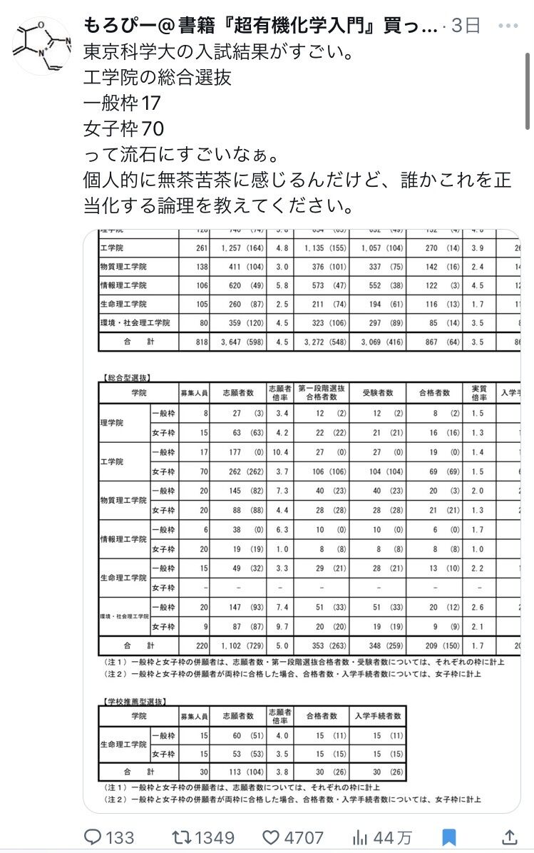 なぜ女子枠が必要か、の理屈見たことあるけど何言ってるかようわからんかったわ