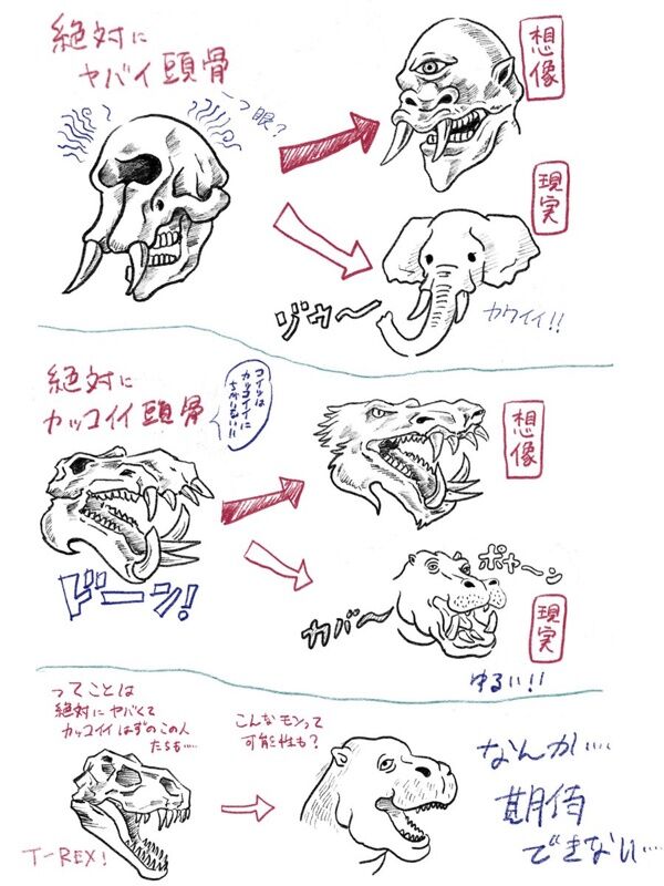 骨だけで動物の顔の皮膚までわかるわけないやろ