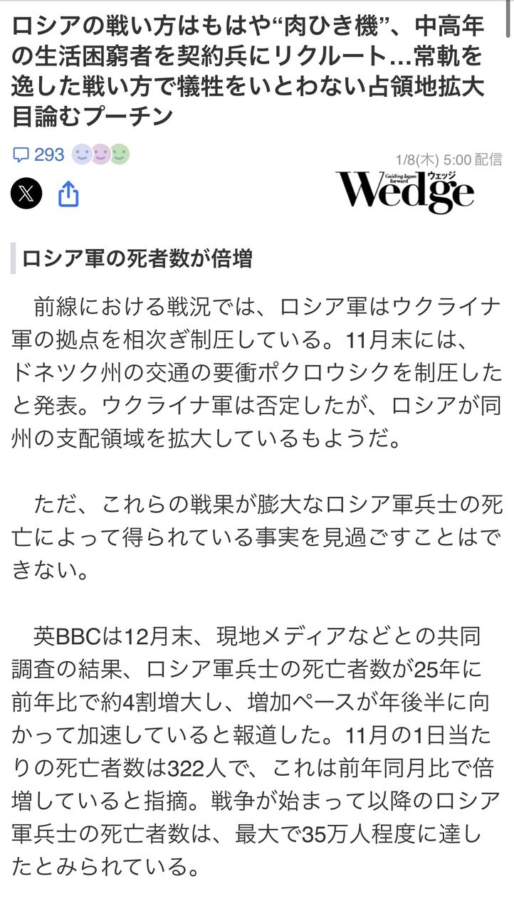 しかもロシア兵の間で不平不満が溜まってきて政府へ怒りの矛先が向いてきてるらしい