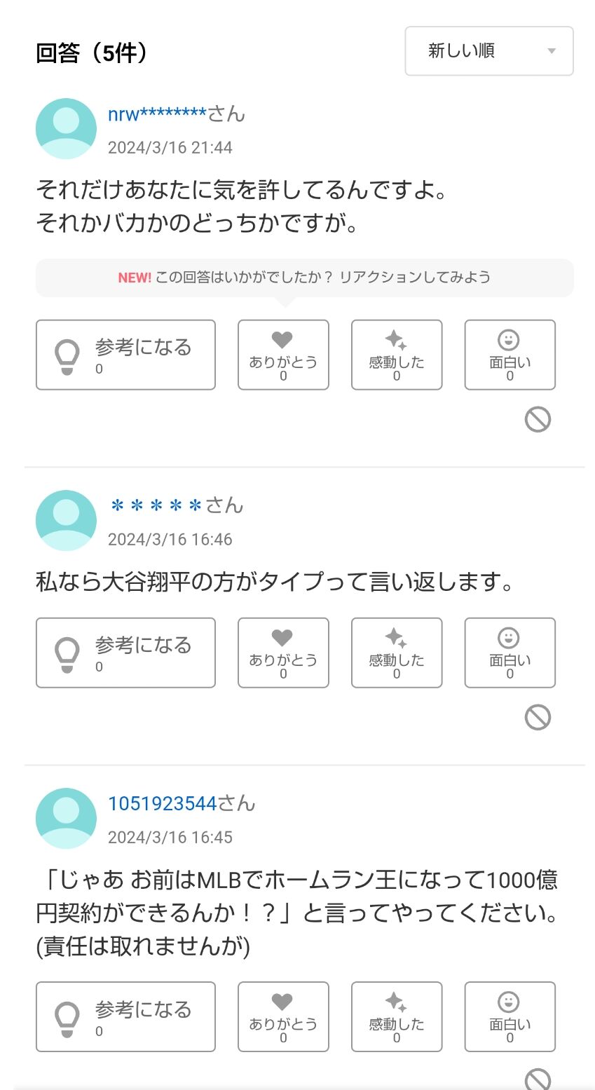 知恵袋って回答者どいつもこいつも喧嘩腰すぎて無理やわ