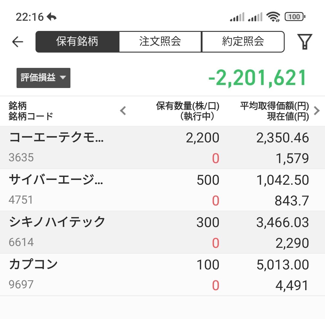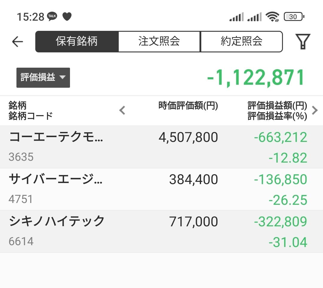 持ち株マイナス100万超えて減ったなぁて思ってたら年末にマイナス200万超えたわ