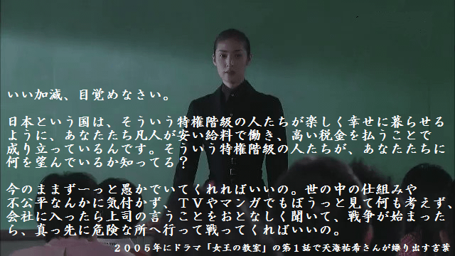【悲報】2005年に放送していたドラマ「女王の教室」のセリフを改めてみるとヤバすぎる件・・・ 2025年08月24日 カテゴリ:テレビ番組 1: 2023/12/11(月) 10:51:59.70 ID:YhKxruah0 10: 2023/12/11(月) 10:55:59.03 ID:TQT/425B0 ゆとり教育の時代だからしゃーない 19: 2023/12/11(月) 11:00:02.90 ID:Ouxa5jqFd この当時でさえ打ち切り論争あったからな、今なら放送すら無理やろ 【【悲報】2005年に放送していたドラマ「女王の教室」のセリフを改めてみるとヤバすぎる件・・・】の続きを読む タグ :#ドラマ