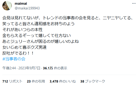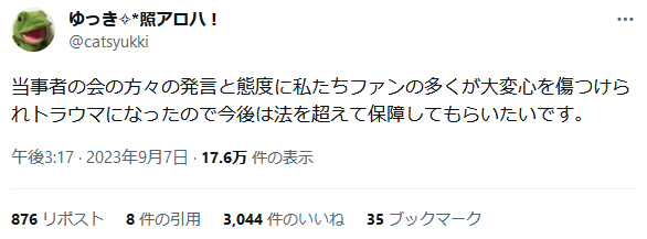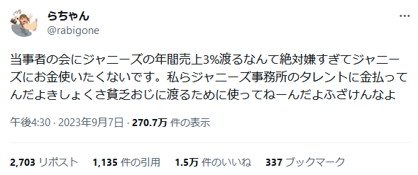 【悲報】ジャニオタさん、被害者への誹謗中傷ムーブで害悪オタクランキングのスターダムへ躍り出る 2023年09月09日 カテゴリ:SNS 1: 2023/09/08(金) 12:06:34.09 ID:4qDFvKzw0 6: 2023/09/08(金) 12:08:14.85 ID:gBUe43WT0 いいね多すぎやろ 【【悲報】ジャニオタさん、被害者への誹謗中傷ムーブで害悪オタクランキングのスターダムへ躍り出る】の続きを読む タグ :#ジャニオタ#ジャニーズ