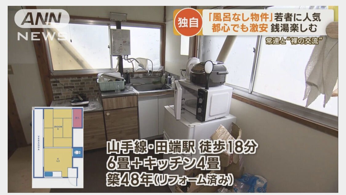 【独自】「風呂なし物件」若者に人気…都内で家賃3.2万円「好きなものにお金使える」