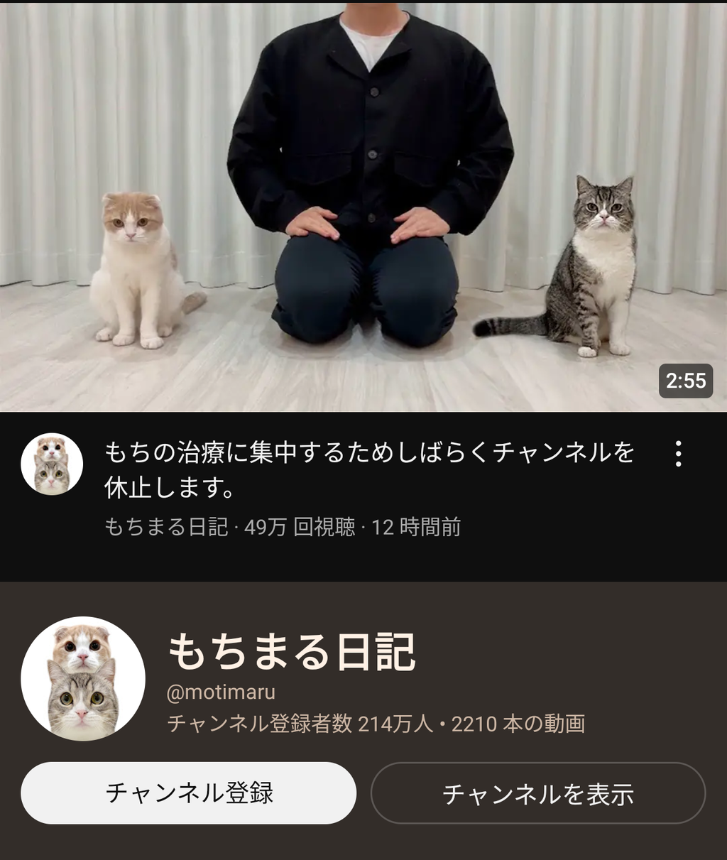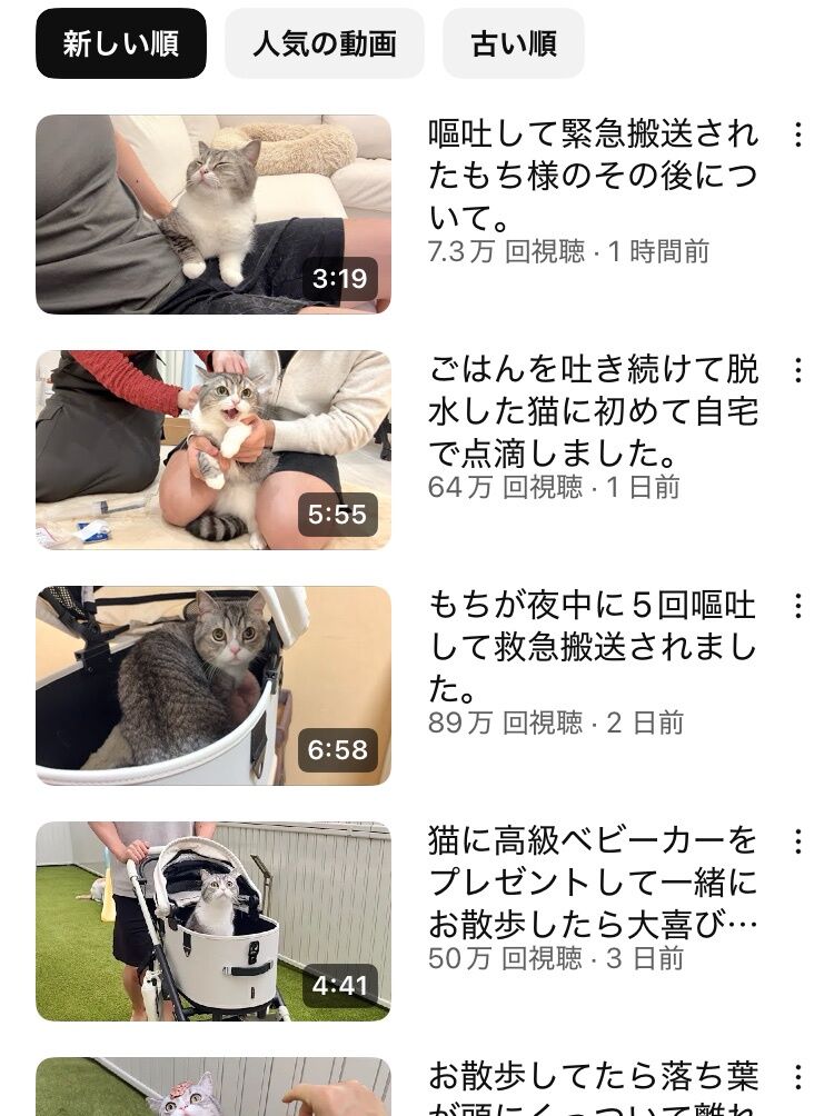 【悲報】もちまる日記、ついに週刊誌に目を付けられるwwwwwwwwwww 2025年04月26日 カテゴリ:自然・生き物 1: 2025/04/25(金) 15:40:36.60 ID:dKISdcve0 「虐待と言われても仕方ない」 猫たちにいたずらをして嫌がる姿や驚いた様子を公開することがしばしばあるんです。 昨年の秋ごろには、“もちまる”に強炭酸水を飲ませる動画をアップして大炎上しました。 また、2023年6月には“子猫が棚に閉じ込められた”という動画を投稿。 ネット上では“閉じ込められてるなら何をのん気に撮影しているんだ”と、 X(旧ツイッター)で《監禁》《動物虐待》というハッシュタグとともに拡散される事態になりました。 《強炭酸水なんか飲ませるから、水飲むの怖くなって脱水状態で腎臓病悪化するのが分からんかね……》 《本当に猫好きだったらさせないことばかり見てきたよ。虐待と言われても仕方ない》 《猫を飼った事のない私でも気がつく違和感》 《再生回数欲しさに無茶なことをし始めるから猫にストレスがかかって体調を崩す》 《金儲けの道具として猫に負担かけすぎたからでしょ 飼い主がもちまるの身体を“壊した”ようにしか見えない》 など、批判の声が殺到している。 【【悲報】もちまる日記、ついに週刊誌に目を付けられるwwwwwwwwwww】の続きを読む タグ :#もちまる日記#YouTuber#猫